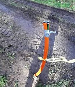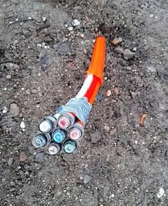 Nun, vom Weg ist zwar noch nicht viel zusehen. Im Gegenteil: Die genannte Verbindung ist derzeit kaum zu Fuß zu bewerkstelligen. Aber der aufmerksame Spaziergänger hat sie schon entdeckt, die orangenen Kabelenden, die an mehreren Punkten entlang des „Weges“ aus dem Boden ragen, um dort fachmännisch miteinander verbunden zu werden. Korrekterweise sind das bislang eigentlich noch gar keine Kabel, sondern nur Leerrohre, in die die eigentlichen Glasfaserkabel später mit Luft eingeblasen werden.