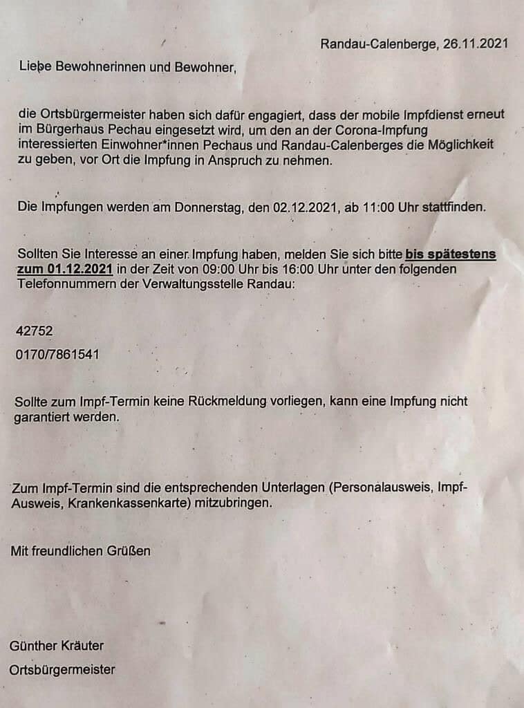 Brief des Ortsbürgermeisters vom 26.11.2021