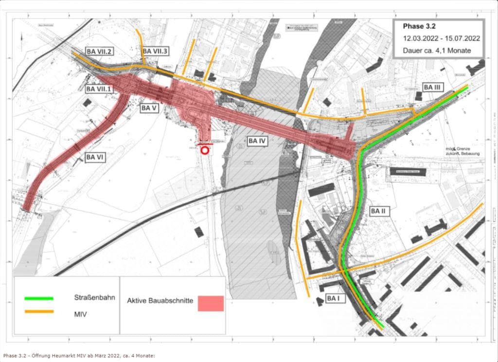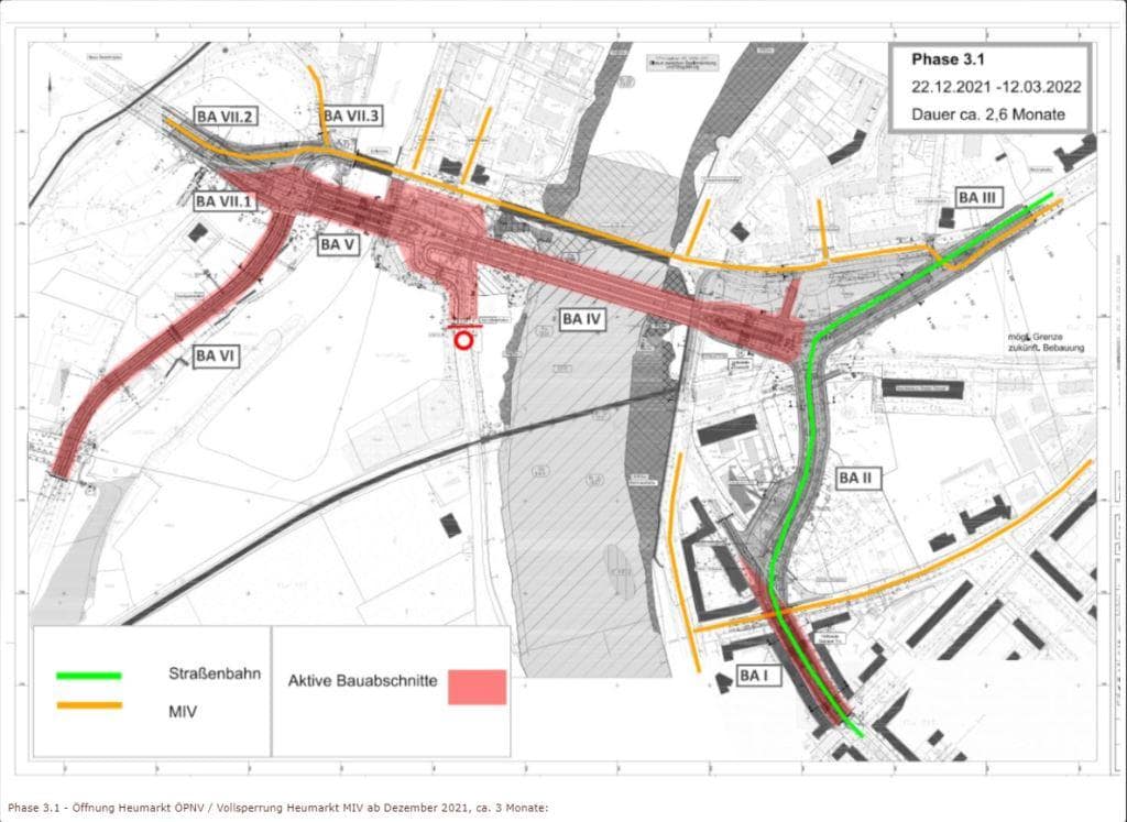 Besonderheiten | dafür wird zeitgleich die bis dahin neu geschaffene Verkehrsanlage am „Heumarkt“ freigegeben – zunächst nur für Straßenbahnen; ab 12. März 2022 auch für Kraftfahrzeuge |