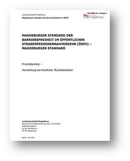 Die Landeshauptstadt Magdeburg ist Aufgabenträger des Öffentlichen Personennahverkehrs (ÖPNV) im Sinne des Personenbeförderungsgesetzes (PBefG). Die Landeshauptstadt Magdeburg wird eine barrierefreie Mobilität im ÖSPV umsetzen. Die damit verbundene Zielstellung ist die Schaffung eines öffentlichen Mobilitätssystems für alle Menschen in Magdeburg. Ausgangspunkt dieser Bemühungen ist die UN-Behindertenkonvention von 2006. Diese verpflichtet die unterzeichnenden Staaten