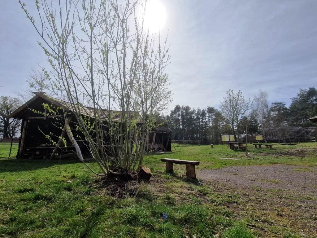 Die bisherigen Arbeiten haben schon sehr deutliche Spuren hinterlassen: Die Anlage ist von Strauch- und Baumwildwuchs befreit, der alte Palisadenzaun musste nach Vorgabe des Bauaufsichtsamtes (Unfallgefahr bei Starkwind/Sturm) abgerissen werden, wird aber wieder neu errichtet, Unterstände im vorderen Bereich sind neu abgestützt und die Feuerstelle ist mit Windschutz versehen. Vor dem Wirtschaftsgebäude steht kein einziger Baum oder Strauch mehr. Was zunächst verwundert, hat durchaus seinen Grund, denn die Fläche wird zu einer kleinen Terrasse gepflastert, die dann in das gastronomische Konzept einbezogen werden soll.