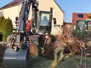 Nach Angaben des Eigenbetriebs Stadtgarten und Friedhöfe (EB SFM) Magdeburg am 29.05.2020 sollten Ersatzpflanzungen im Rahmen der nächsten Baumoffensive (2021) geprüft werden. Bereits in der Vorbereitung wurde jedoch erkannt, dass es zu Konflikten mit den unterirdisch verlegten Versorgungsleitungen kommt. Dennoch sollten die Neupflanzungen im Jahr 2021 realisiert werden. Tatsächlich wurde dieser Termin quasi „auf den letzten Drücker“ eingehalten, denn am 21. und 22. Dezember rückten die Mitarbeiter mit Radlader und Bagger an, um die verbliebenen Stümpfe zu entfernen, die Pflanzgruben auszuheben und neue Bäume zu setzen. Hier wurde – wie geplant – ein Baumartenwechsel vorgenommen. Statt der Ebereschen wurden nun nach Angaben der Kollegen vor Ort Japanische Eichen gepflanzt. Ob es sich dabei um Kaisereichen oder Kastanieneichen handelt, ist der Redaktion leider nicht bekannt. Beide Bäume können 25-30 Meter hoch werden.