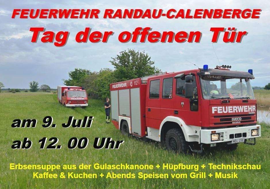 Wie die Freiwillige Feuerwehr Randau-Calenberge mitteilte, wird in diesem Jahr der sogenannte „Tag der offenen Tür“ (Feuerwehrfest) am 09. Juli stattfinden. Ab 12 Uhr steht in der Gulaschkanone deftige Erbsensuppe und eine Hüpfburg für die kleinen Gäste bereit, es gibt Kaffee&Kuchen, eine Technikschau und zum Abend herzhaftes vom Grill. Für musikalische Unterhaltung ist gesorgt.