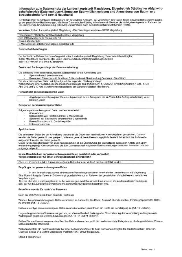 Die dem Bürgerhaus Randau zugeordneten Mülltonnen sind regelmäßig voll, so dass durch die Mieter des Bürgerhauses keine Entsorgung bspw. von Deko nach den Veranstaltungen erfolgen kann. Die Ursac12 pthe dafür kann nicht eindeutig geklärt werden, könnte jedoch möglicherweise daran gelegen haben, dass sie nicht zur Abholung bereitsgestellt wurden. Eine andere Erklärung wäre eine illegale Müllentsorgung.