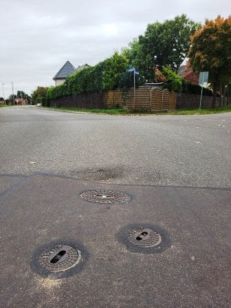 Randau: Kreuzung An der Schlossmauer/Zur Kreuzhorst: neuer Straßenschaden