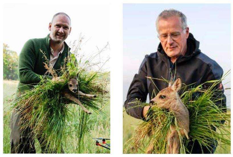 Wilko Florstedt (links) und Uwe Hallmann mit geretteten Rehkitzen