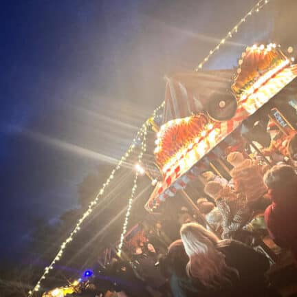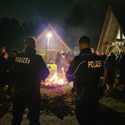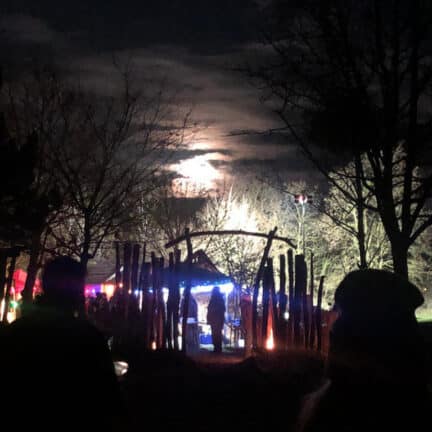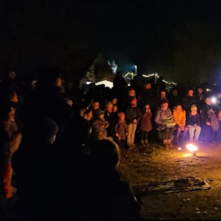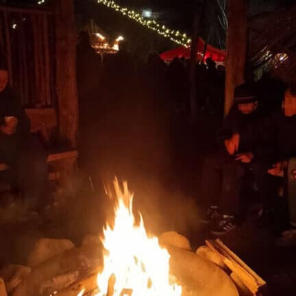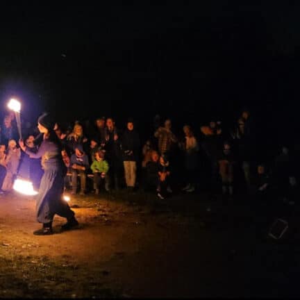 Wenn dann die Sonne untergegangen ist, werden wir mit Laterne und Speer als Steinzeitdorfwachen umhergehen und die Besucher empfangen.