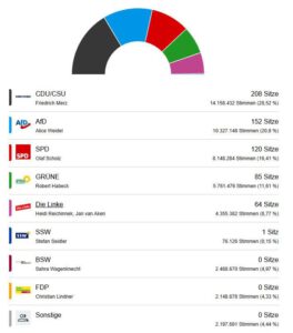 Nach dem Zerfall der SPD geführten „Ampelkoalition“ mit FDP sowie Grüne und der daraufhin folgerichtig gescheiterten Vertrauensfrage durch Noch-Kanzler Scholz am 16. Dezember 2024 standen am gestrigen Sonntag in Deutschland Neuwahlen für die Zusammensetzung der nächsten, nunmehr 21. Deutschen Bundestages an.